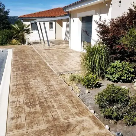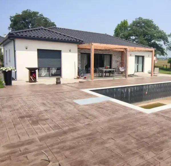 Nos réalisations en béton imprimé | ![]() Le béton imprimé est-il glissant ?Non, le béton imprimé présente une surface texturée qui le rend adapté aux zones piétonnes et aux abords de piscine, à condition d’être correctement mis en œuvre et protégé. Combien de temps dure un chantier ?Tout dépend de la surface et de la préparation du terrain. Pour donner un ordre d’idée, une terrasse ou une plage de piscine « standard » se réalise généralement en quelques jours (hors temps de séchage complet). Le béton imprimé se fissure-t-il ?Comme tout béton, il peut travailler légèrement. C’est pourquoi nous mettons en place les bonnes pratiques (épaisseur adaptée, joints de fractionnement, préparation du sol) pour limiter ces phénomènes et assurer une bonne pérennité. Quel est le prix d’un béton imprimé ?Le tarif dépend de plusieurs éléments : surface, état du terrain, motif choisi, contraintes techniques… Le plus simple est de nous demander un devis sur mesure : nous nous déplaçons, étudions votre projet et vous remettons une proposition détaillée. |
